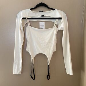 * Miaou Phoenix Top ivory white Shrug Tank Corset Sz S NWT Revolve $235