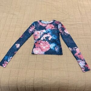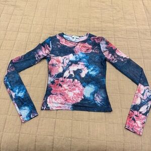 Miaou Revolve Mesh Semi Sheer Long Sleeve Roses Top Size Small