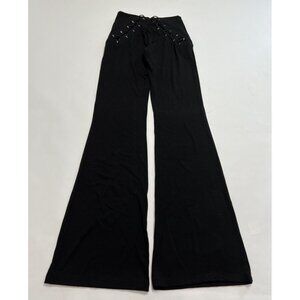 Description from retailer: Elastic waistband. Front and back lace grommet detail with elastic bands. Midweight jersey fabric. 16" at the knee breaks to 20.5" at the leg opening. Revolve Style No. MAOU-WP9. Manufacturer Style No. 1013-CL-BLK.