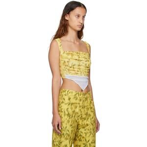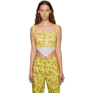 Featuring a square neckline, fixed shoulder straps, and a self-tie fastening at the back. Designed with gathering and boning at the side seams. Partial mesh lining. Material: 94% recycled polyester, 6% lycra. Made in China. Fits true to size
