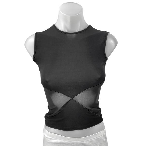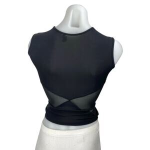 Miaou Women's Black Sleeveless High Neck Cutout Sheer Mesh Crop Tank Top Sz XXS