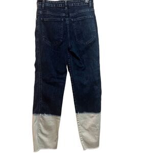 Miaou Women's Blue White Dip Dye Frayed Hem Button Fly Cropped Jeans Size 25