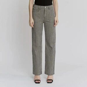 Step into bold, modern style with these brand new with tags Mica Breck Straight Jeans in the striking black + ivory vertical stripe pattern! 🖤🤍 These sold-out jeans offer a sleek, elongating look thanks to their super high rise and straight-leg silhouette, making them a standout piece for any wardrobe.