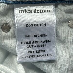 Mica Denim, size 26, fits like 24/25, distressed, wide leg, button fly, raw hem, striped side panel, 100% cotton, high rise, cropped, casual, women’s jeans, vintage-inspired, Y2K style, boutique, breathable, stylish, streetwear, denim