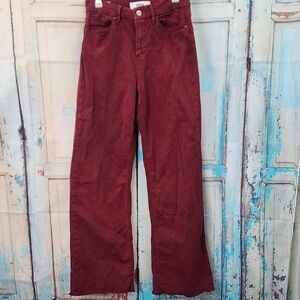 Stylish burgundy high-waisted, Wide Leg, Raw Hem pants.