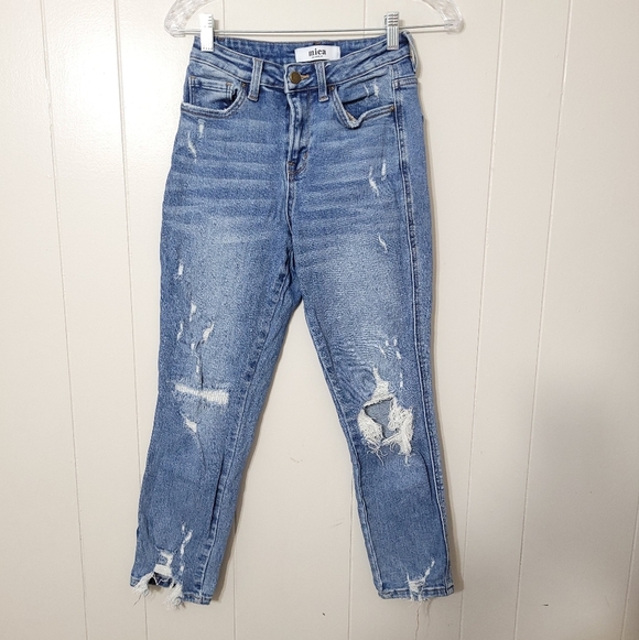 Mica Los Angeles Jeans Womens Blue Distressed Slim Straight High Rise Size 24