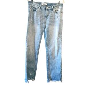 Mica Mid Rise Cigarette Crop Cropped Jeans Size 28 Stretch Power Blue Raw Hem