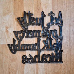 Micah 6:8 Metal Wall Art. This beautiful work of art was handcrafted by artisans at FMSC MarketPlace partner Anchored in Hope.
