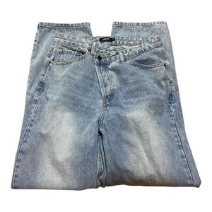 Mica’s Asymmetric Waist Straight Leg Jeans Sz L Barrel Jeans Wide Leg