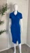 Elegant midi dress in a vibrant blue hue, designed to flatter the figure with its bodycon silhouette. This dress features a classic shirt collar and a button-down front that leads to a stylish ruched detail, enhancing its shape. The short sleeves add a touch of casual sophistication, making it versatile for various occasions. Perfect for a chic daytime event or a sophisticated evening out, this dress can easily transition from a business casual setting to a stylish date night.