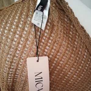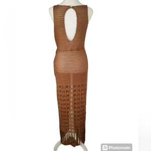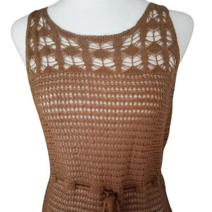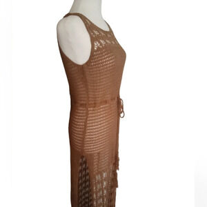 Micas Brown Crochet Drawstring Waist Maxi Length Fringe Dress Size Medium NWT