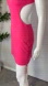 Chic and trendy mini dress, perfect for making a statement. This hot pink dress features a halter neckline and a bodycon silhouette that accentuates your curves. The ribbed fabric adds texture and visual interest, while the cutout sides and open back provide a flirty and modern touch. Criss-cross straps in the back add a unique design element. Ideal for a night out, a party, or a club event where you want to stand out.