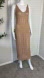 A stylish and versatile knit midi dress, perfect for warm weather occasions. This sleeveless dress features a flattering V-neckline and a unique crochet knit pattern throughout, offering both coverage and breathability. The tan color adds a touch of sophistication, making it easy to dress up or down. Ideal as a beach cover-up, a casual summer dress, or for a relaxed vacation outfit.