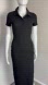 Micas Polo Style Dress Bodycon Ribbed Knit Maxi Dress with Slit Black Small