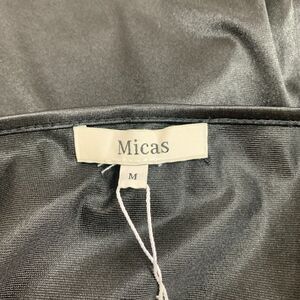 Micas Satin Draped Midi Dress Womens M Medium Black Cowl Neck Sleeveless Stretch