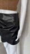 Keywords: faux leather skirt, mini skirt, asymmetric hem, black skirt, party skirt, clubwear, high waist, ruched skirt, edgy fashion, night out outfit