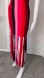 Striking striped bodycon dress with a unique fringe detail. This sleeveless dress features bold vertical stripes in shades of red, pink, and black, creating a visually appealing and figure-flattering silhouette. The eye-catching fringe at the hem adds a playful and modern touch, making it a standout piece. Perfect for a night out, a cocktail party, or any event where you want to make a statement.