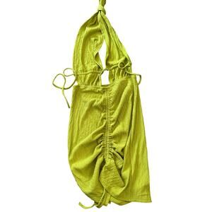 Micas Vacation Solid Cutout Tie Back Drawstring Mini Green Dress Party Large