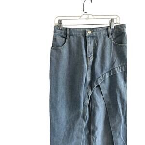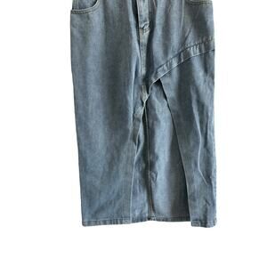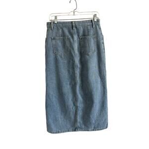 Micas Women's Large Light Blue Wash Slit Denim Pocket Cotton Blend Midi Skirt