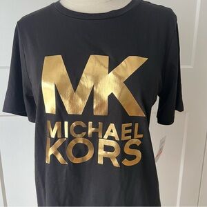 Micha Kors Golden Logo Black Short Sleeve T shirt Top size Small