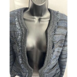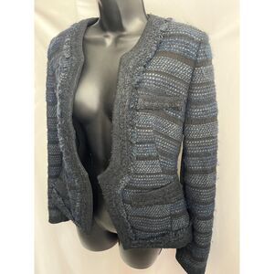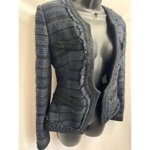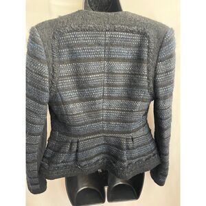 Michaa Tweed Boucle Blazer Jacket Navy Blue Black Classy 70s Sze S Career Office