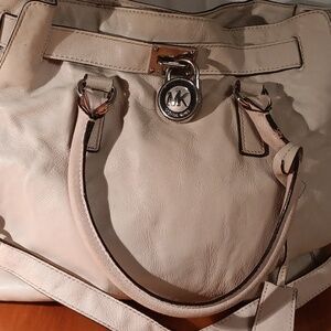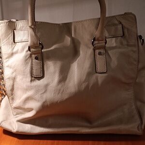 Michael kors cream.color purse. Used in good used condition. Handles have some light wear color, nothing too bad. no tears, or odors. This is a huge bag!