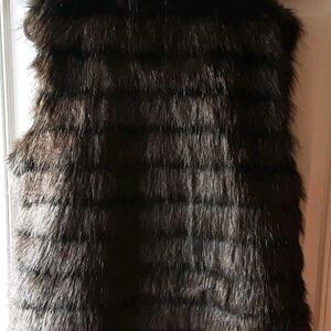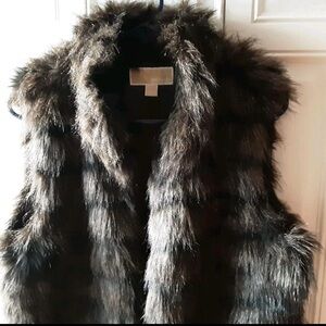 Elegant faux fur vest by Michael Kors. Features rich brown and black hues. Adds sophistication to any look.