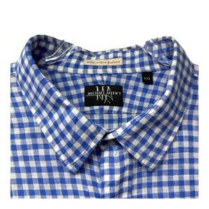 Michael Allens Shirt Mens XXL 100% Linen Blue Button Down Gingham Prep Heritage