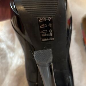 Chic black heels with vibrant stripes. Perfect for adding flair to any outfit.