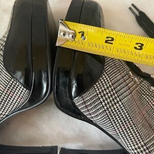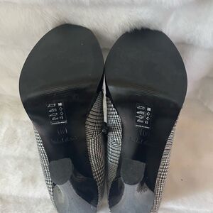 Michael Antonio Black,White &Red plaid fabric lace up boots, patent black faux leather trim trim SZ 7.5 pre owned in good used condition small tear on the left boot just the fabric the tear didn’t go through the lining see all pictures any questions please message.