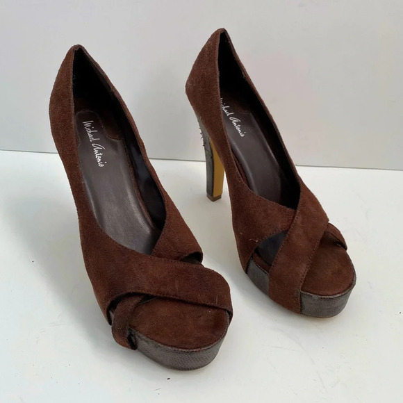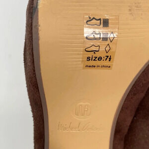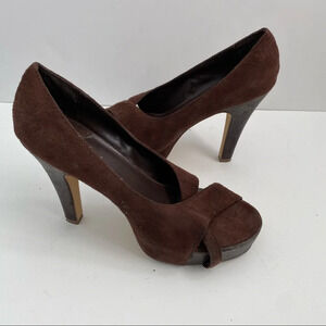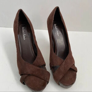 Michael Antonio Brown Suede Peep Toe Platform Heels, size 7.5.