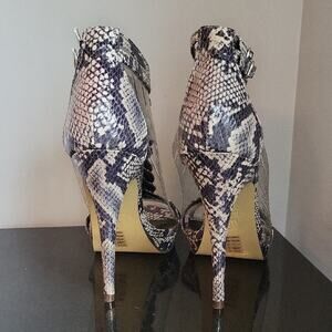 Michael Antonio Brown and Cream Snakeskin 5" High Heeled Sandals Size 8.5