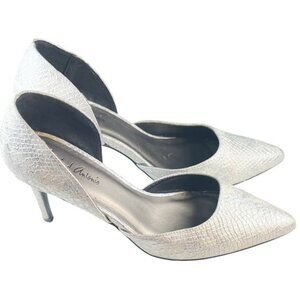 Michael Antonio D’Orsay Snakeskin Heels in Silver and White Size 9 Anima…