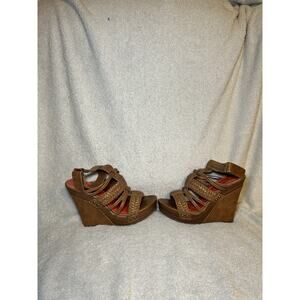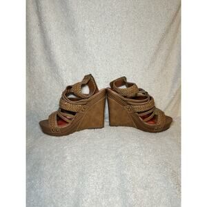 Michael Antonio Women's size 7.5 Brown Woven Strapped Heels with Ankle Strap