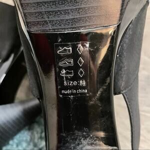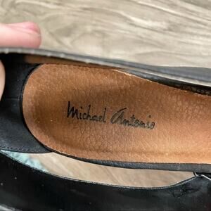 Michael Antonio black heels size 8.5. Inside labels is torn/rubbed away, however it doesn’t affect the outside look of the shoe. Otherwise, excellent Used Condition. Please see photos for measurements and tags!