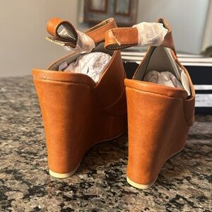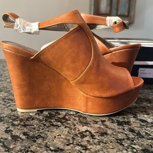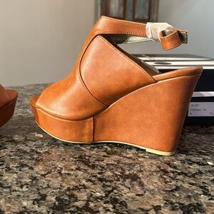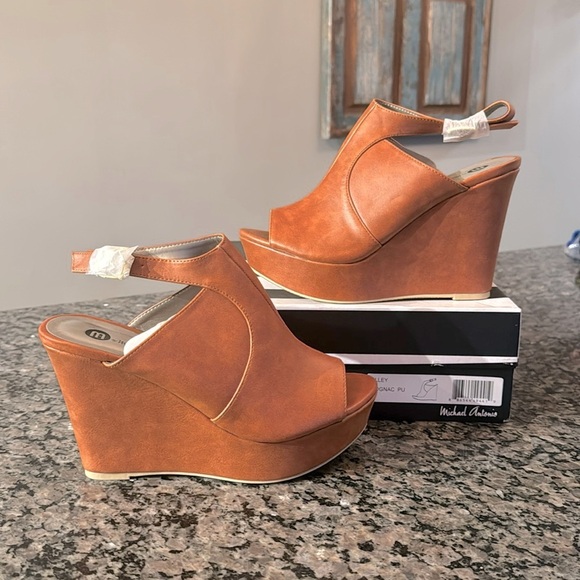 Michael Antonio cognac wedge peep toe NIB 7.5