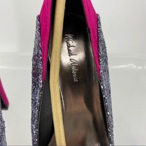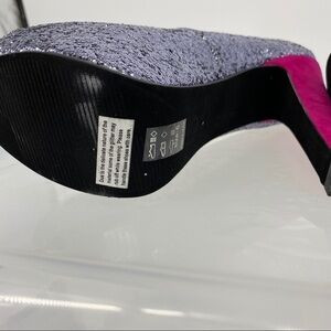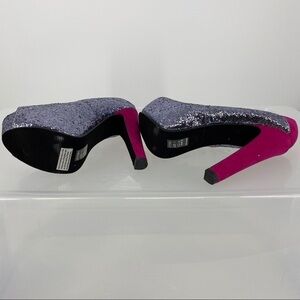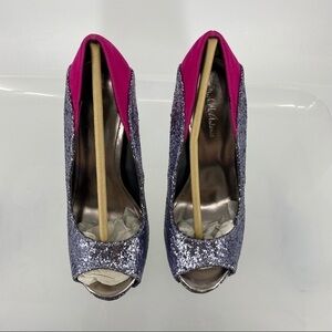 Michael Antonio hot pink and silver glitter colorblock platform heels. Chunkier style heel. Peep toe. Very vibrant pink. Chunky glitter. Size 6.