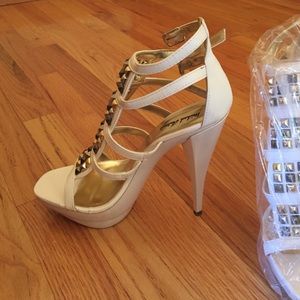 Never worn, white Michael Antonio pumps with gold and silver studs on the front. Size 7 1/2