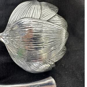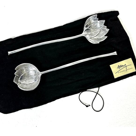This Michael Aram Serving Set is from the Lotus Blossom Flowers Collection and includes both a spoon and fork for all your serving needs! Each utensil is 13" L x 3.5" W, are in exceptional condition and come with a Michael Aram logo storage pouch! Make this set part of your entertaining serve ware today! # 3770