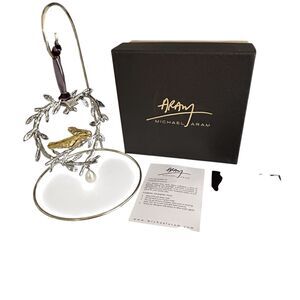 Michael Aram Lovebirds Christmas Ornament 132381. Good pre-owned condition with normal wear, see photos for details. Measurements in photos and are approximate. Comes in original box.