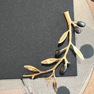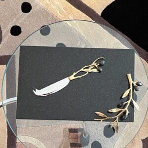 Michael Aram Olive Branch Cheese Board with Knife Gold Black Granite NIB