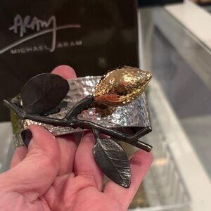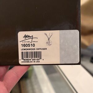 Stylish box set by Michael Aram. Includes a crystal oil holder, welding metal decor and black sticks. Ideal for enhancing decor. No liquid - used but looks like new. All packaging original