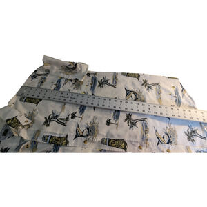 Add a touch of the coast to your wardrobe with this Michael Austin Rugged Wear shirt in size XXL. Made from 100% cotton, this short-sleeve button-up features a lighthouse and palm tree print, perfect for casual summer days or beach outings. Stay cool and stylish with this classic coastal-inspired shirt.