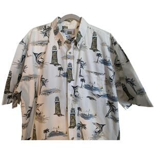 Michael Austin Rugged Wear Lighthouse Print Shirt Size XXL 100% Cotton Coastal