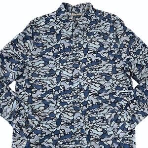 Michael Bastian Men's Blue Geometric Print Button Down Shirt - SIZE L