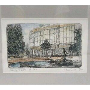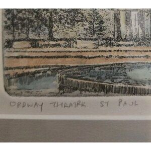 The etching depicts a scene from the Ordway Theater in St. Paul, Minnesota, capturing the essence of theater and performance art. It is an original piece, produced in the United States.