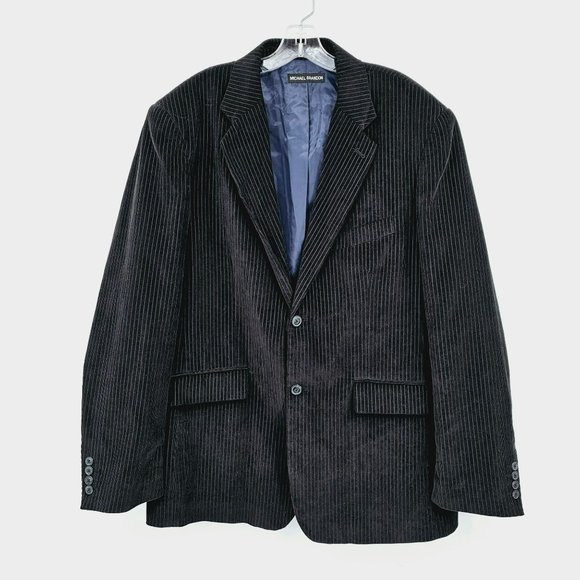 Michael Brandon Blazer Jacket 44 XL Black Corduroy Lined 2 Button Double Vented