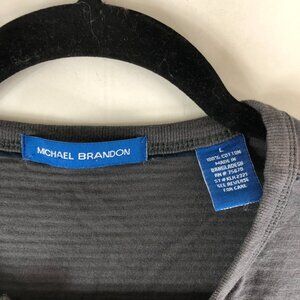 Michael Brandon Mens Gray Long Sleeve Henley Shirt 100% Cotton Size L