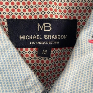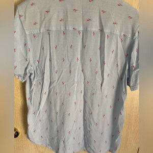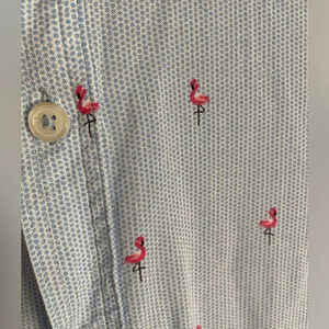 Michael Brandon men’s light blue button down with pink flamingos. Slim fit lightweight rayon for a fitted look. Sz Medium. I noticed small marks while taking photos that may wash out but I’m not sure. See photos