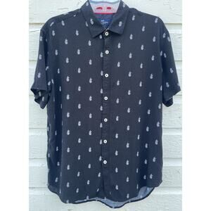 Michael Brandon Shirt Mens L Black Pineapple Slim Short Sleeve Casual Button-Up
